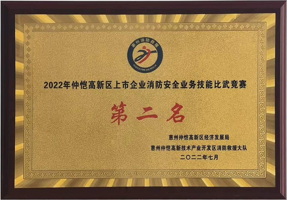 On July 19, 2022, the firefighting skills competition of listed companies jointly organized by Economic Development Bureau of Huizhou Zhongkai High-tech Zone and Fire Rescue Brigade in Huizhou Zhongkai Technology Industrial Development Zone came to an end. Huizhou KTC stood out from the 23 participating companies and won the second place.