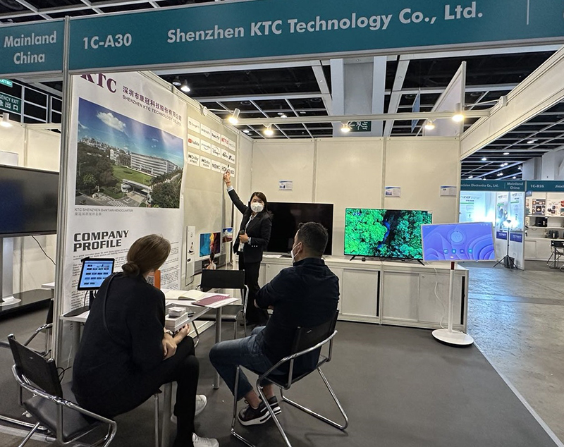 On October 16, Hong Kong Electronics Fair 2022 (Autumn Edition), organized by the Hong Kong Trade Development Council, was successfully concluded at the Hong Kong Convention and Exhibition Centre. In this four-day exhibition, KTC Technology presented cutting-edge display products and professional audio-visual solutions such as H series MINI-LED LCD TVs, GF series bezel-less LCD TVs and mobile smart screens, appealing to many visitors.