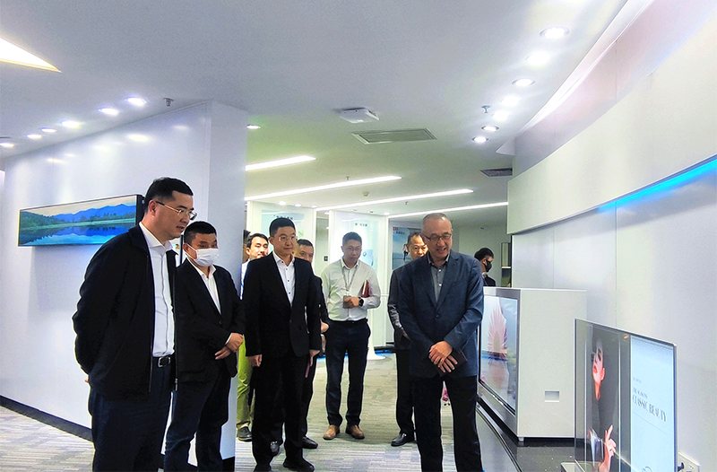Acompañados por el presidente Ling Bin, el miembro del Comité Permanente, Wang Qingke, y su séquito, visitaron la sala de exhibición de productos y el modelo del Parque Industrial de Bantian para conocer detalladamente las funciones y características de los productos de KTC y la fuerza de I+D, y reconocieron plenamente el desarrollo de KTC. Posteriormente, se llevaron a cabo los simposios e intercambios en la sala de conferencias multifuncional.
