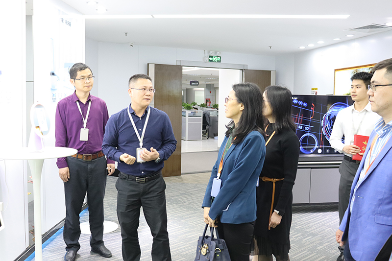 Dirigido por el Sr. Lai, el secretario Dong y su grupo visitaron primero el parque modelo de la compañía y la sala de exposición de productos. El Sr. Lai tenía un conocimiento detallado de la fuerza de I+D de la empresa y sus productos. También experimentó los últimos dispositivos de visualización inteligente. Posteriormente, se llevó a cabo una discusión entre las dos partes.