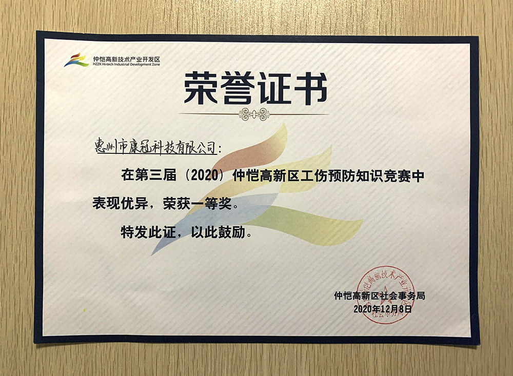 Le 7 décembre, le troisième concours de connaissances sur la prévention des blessures au travail dans la zone de haute technologie Zhongkai (2020) a levé le rideau dans le bâtiment du service des talents. KTC a envoyé une équipe KTC composée de trois collègues du département des ressources humaines, Shi Ruiqi, Luo Zhiyuan et Xue Ji pour y participer. et a remporté le championnat avec d'excellents résultats dans la compétition.