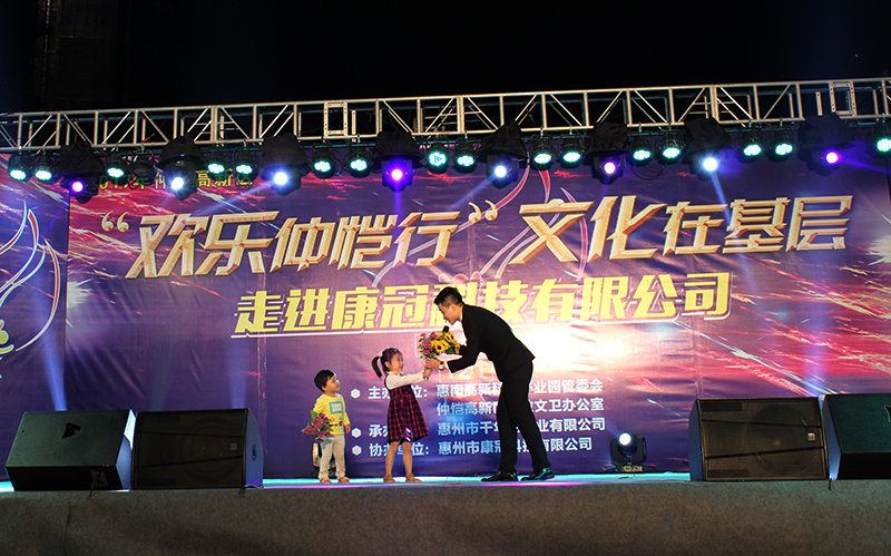 10月17日,2017年“欢乐仲恺行”文艺晚会在惠州华体会体育篮球场隆重举行,出席本次演出的领导有仲恺高新区宣教文卫办文体科科长汪志生、宣教文卫办新闻中心副主任王敏以及管委会刘建标主席。晚会开场,公司总经理凌辉征亲切致辞,对莅临本次晚会的领导、台前幕后的工作人员表示衷心的感谢,祝愿大家共度一个美妙的夜晚!