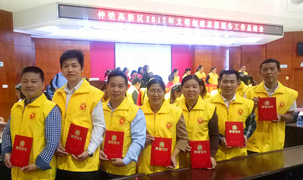 11月1日,由仲恺高新区精神文明建设委员会主办的仲恺高新区2017年文明创建志愿服务工作表彰大会召开,会议上对区内文明交通志愿者、社区志愿者、优秀志愿者及优秀志愿服务队进行了表彰,惠州华体会体育公司王永茂、段绪林、张友坚、林珍梅、 马玉娟获得了“文明创建优秀志愿者”的光荣称号。