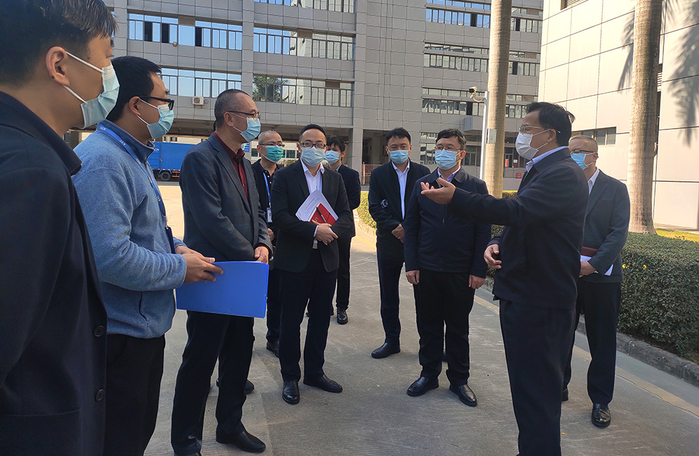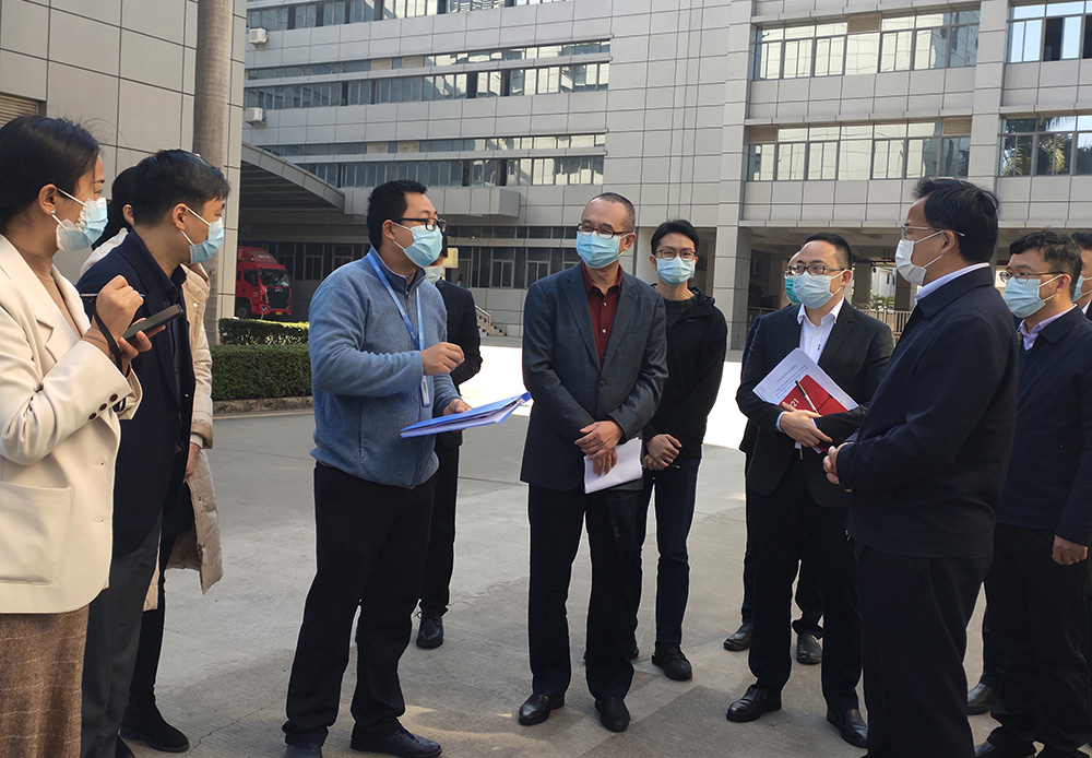 1月29日上午,深圳市商务局局长王有明率队来到龙岗区坂田街道调研跨境货车作业点疫情防控情况,在坂田街道党工委书记张志华一行领导的陪同下来到了深圳华体会体育公司,华体会体育董事长凌斌率队接待并在现场全程陪同调研。