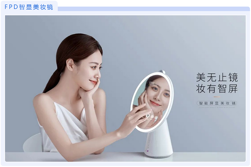 FPD智显美妆镜采用了AI人脸识别功能,以实力助攻女性朋友的颜值暴击,以多场景光线模拟并实现人脸上妆、换发型、换装饰等功能,还原细节,还原真实,为体验者带来真实的美妆场景。