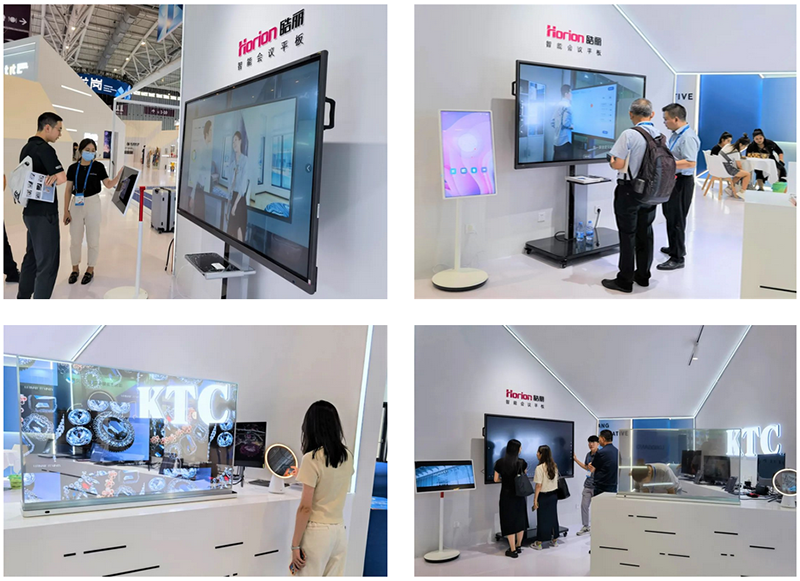 华体会体育KTC品牌的“KTC电竞显示器”、“KTC随心屏”、皓丽(Horion)品牌的“皓丽智能会议平板”、福比特(FPD)品牌的“FPD智显美妆镜”以及华体会体育自主研发的55L31透明屏广告机组团亮相展会,充分展现数字文化智能制造的独特魅力。