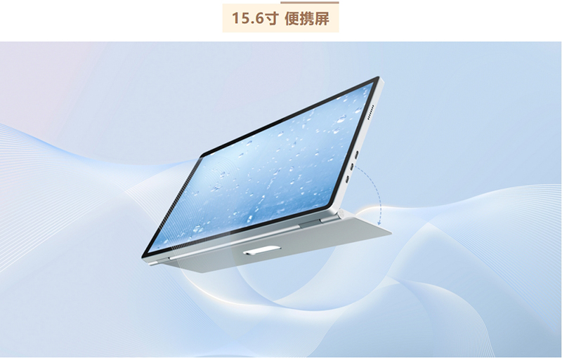 15.6寸 便携屏使用高分大屏窄边框,展现高色域黄金比例;以出色三频细节呈现震撼视觉,支持无极调节,并可满足0-90度调整,整体轻薄,便于携带,是娱乐、办公的不二之选。