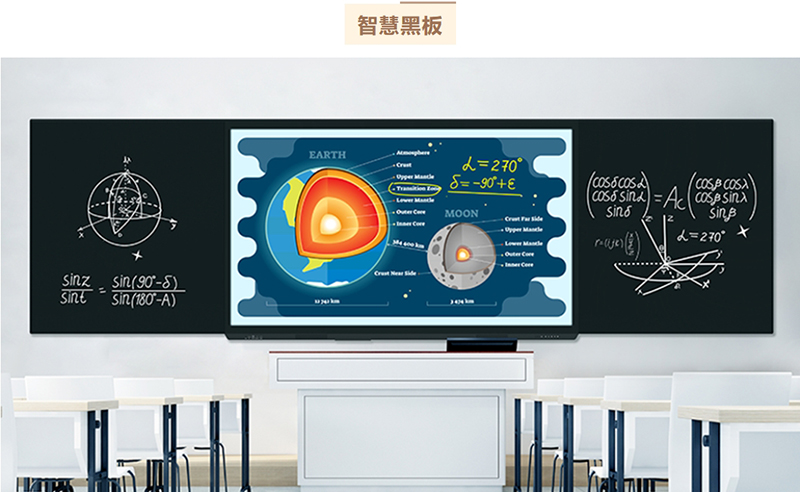 作为专业的教学工具,智慧黑板采用了AG钢化玻璃,原创ID,全贴合技术,20点电容触控技术,并配备副屏辅助教学,让授课更加智能、高效;有效解决了传统的黑板白板易脏、易掉粉、易损坏的问题,让教学更加省心省力。