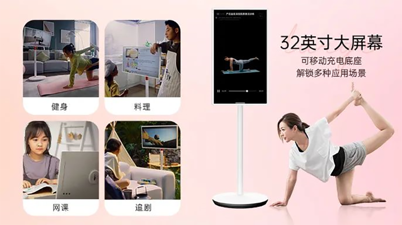移动智慧屏为用户带来更方便、智能的影音观看方式,提高用户幸福指数,兼具长续航、多端投屏、屏幕旋转和可移动等多重功能。底部自带大容量电池和静音万向轮,可实现“随处、随时、随心”的“无线”使用。