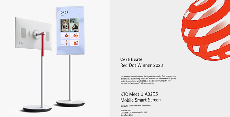 KTC随心屏凭借圆润优雅、简约超薄的设计、精致金属的点缀工艺以及便捷实用的设计理念,斩获2023德国红点产品设计奖。