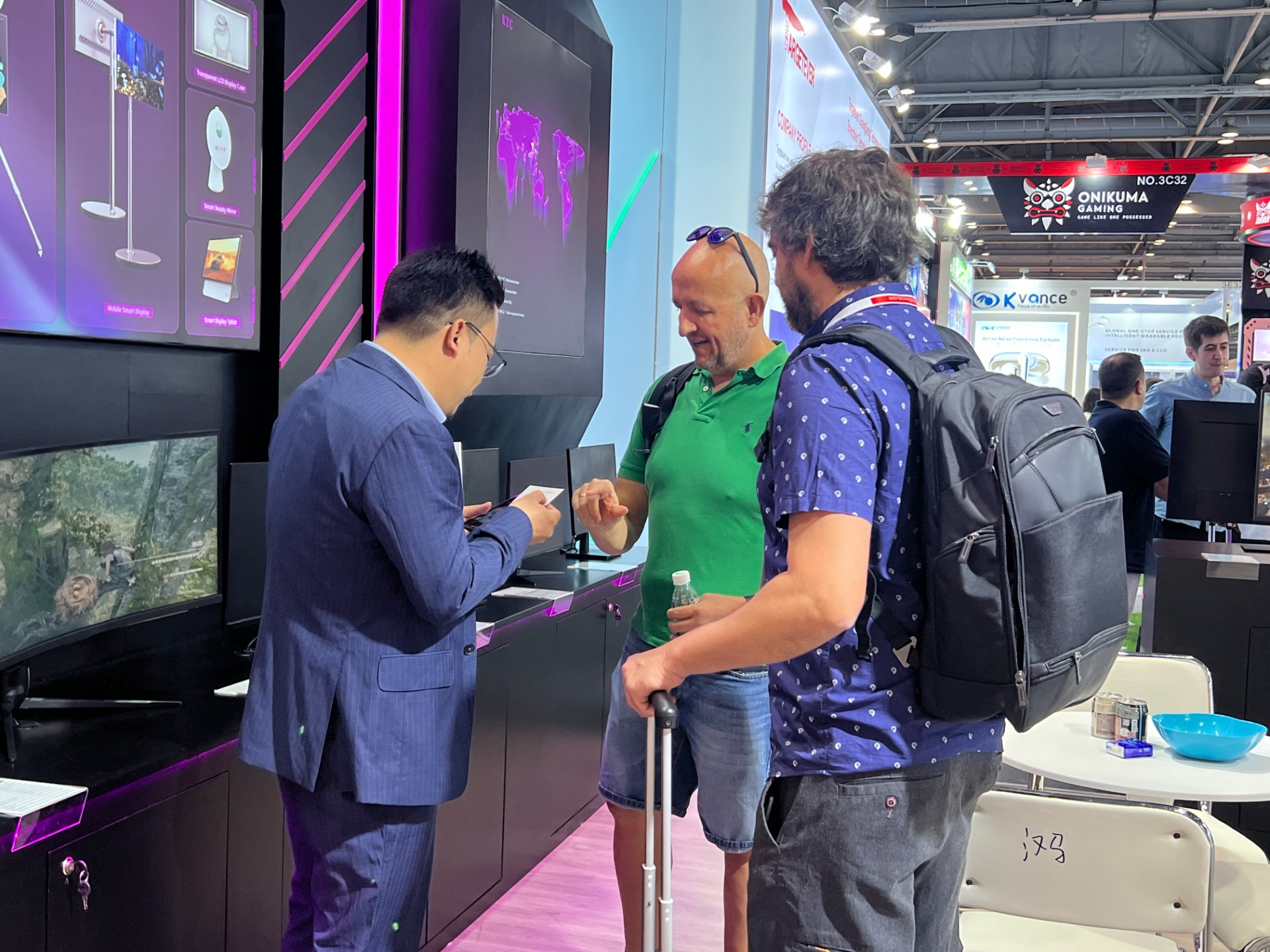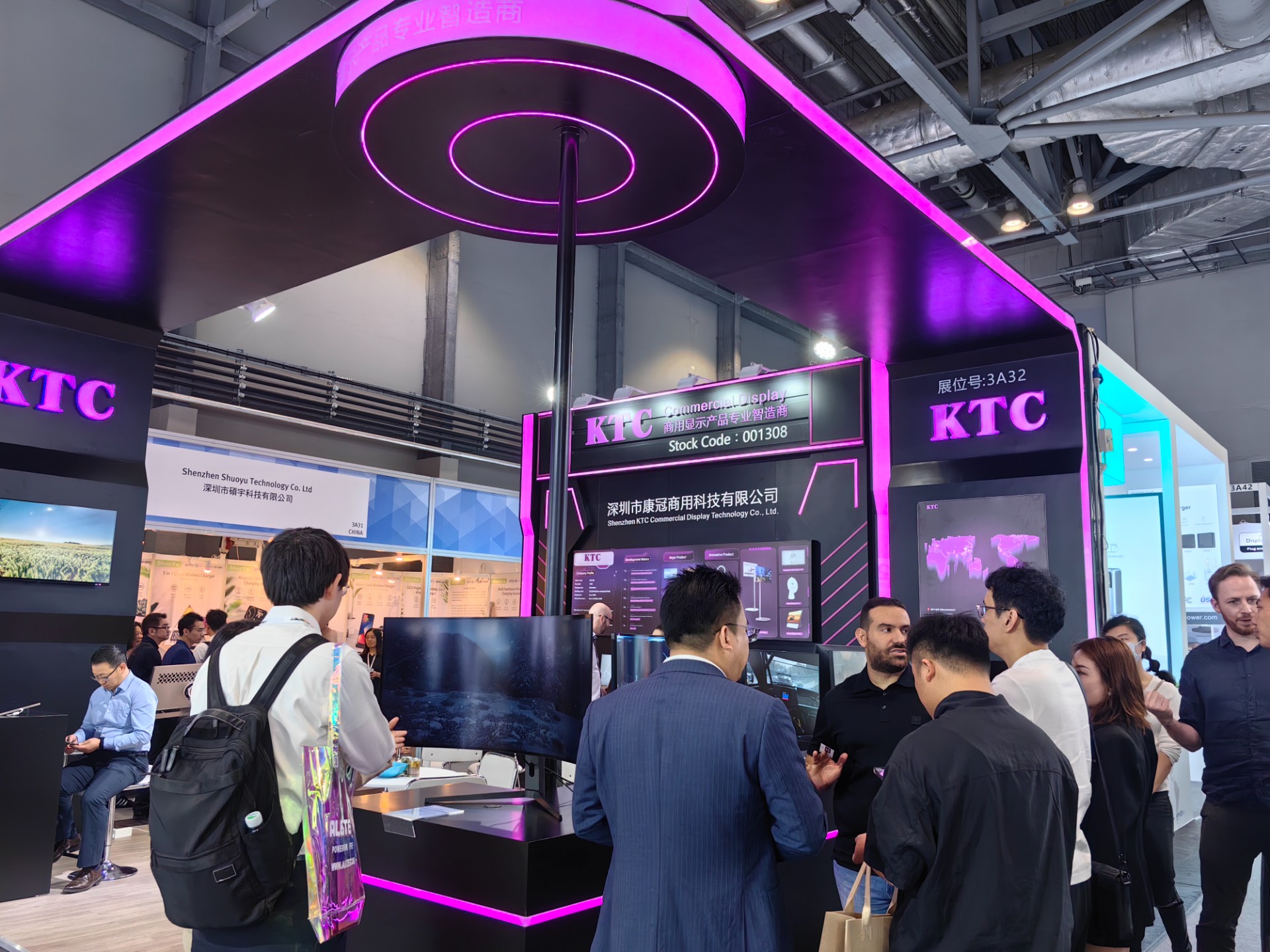 此外,华体会体育的展台设计也独具匠心,吸引了众多观众前来参观咨询。展台以电竞风为主,搭配明亮的灯光和精致的装饰,营造出一种既专业又个性化的氛围。在这里,观众们不仅可以近距离感受华体会体育专业显示器的魅力,还可以与现场的华体会体育业务同事进行深入交流,了解更多关于产品的信息和技术支持。