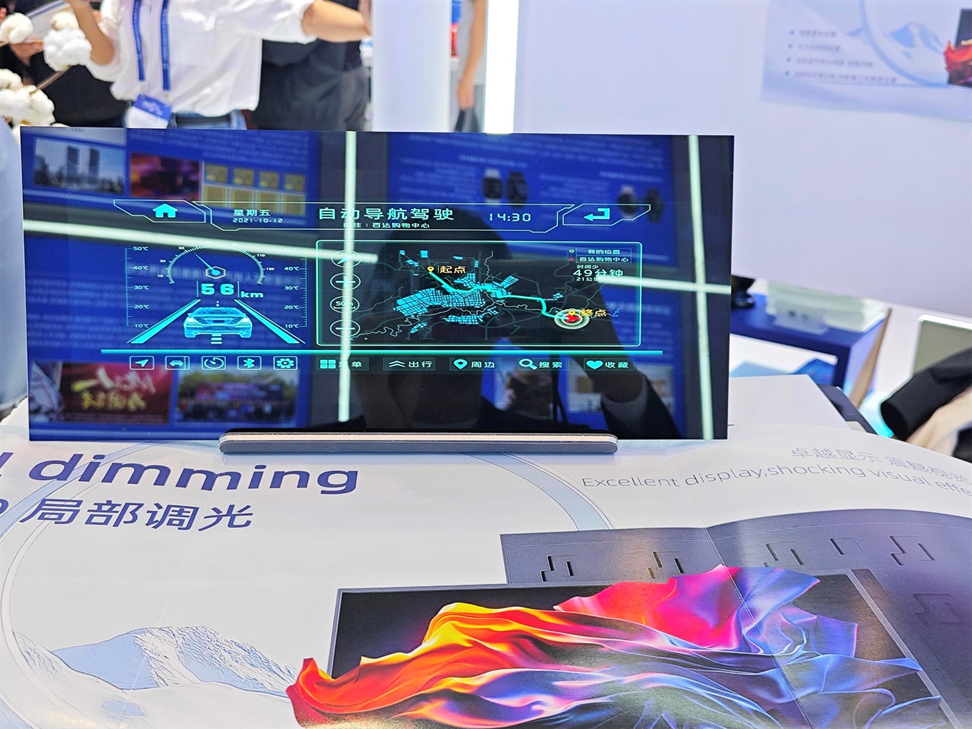 华体会体育还展示了其在车载显示领域的创新成果。12.3寸车载Mini LED背光中控屏采用Mini LED背光技术,通过Local Dimming 分区调光,拥有高分辨率、广色域和高对比度等卓越性能,以清晰、细腻、真实的画面呈现,提升驾驶体验和行车安全性。