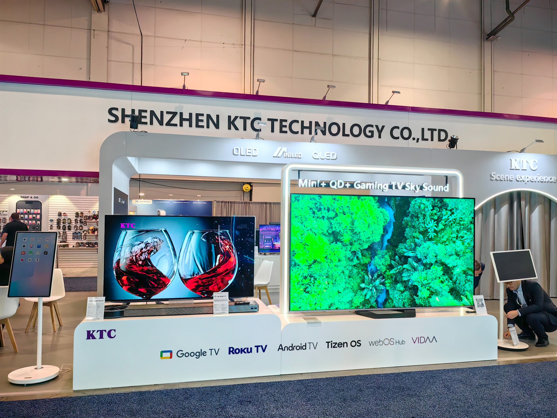 KTC品牌展示出最新发布的新品AI交互眼镜,该产品集成了智谱大模型、防抖、直播等多项尖端技术,吸引众多嘉宾上手体验并赢得称赞。