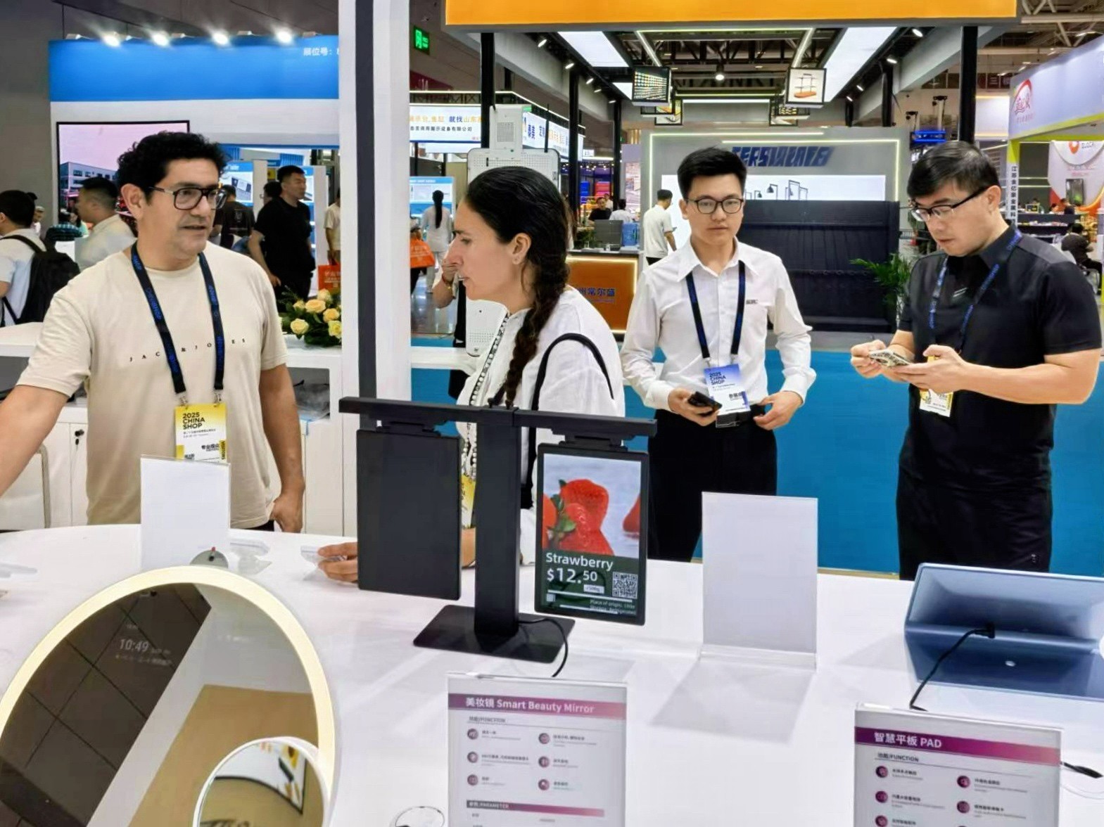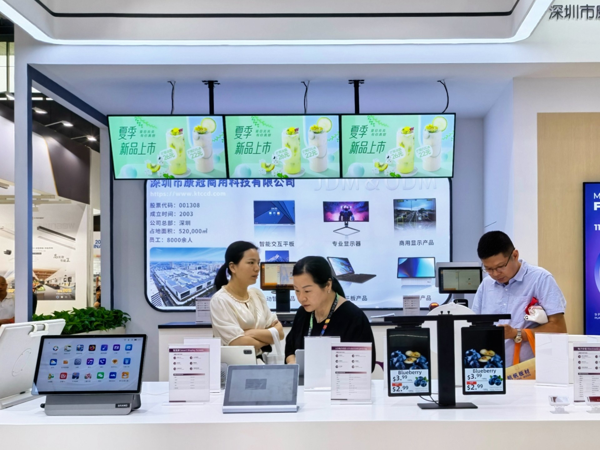 针对零售行业需求,华体会体育展出了专属智能零售显示设备,涵盖LCD电子价签、电子纸价签、自助收银机、智能POS机、单屏显示器等产品,提升零售服务效率和便捷性。