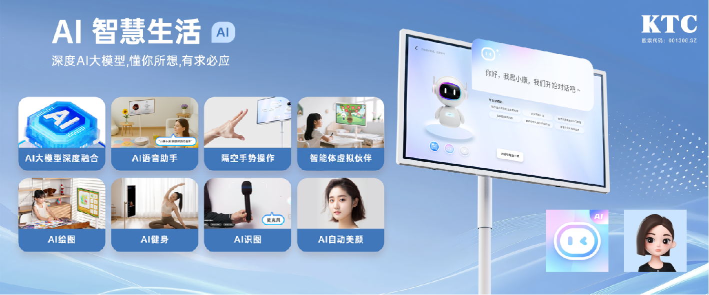 KTC随心屏(型号:A32Q7 MAX)拥有32英寸4K类纸屏、全新万象OS与八核处理器的强劲性能。隔空手势操作与智能体虚拟伙伴功能,结合AI语音助手、绘图、健身、识图及美颜等多元智能应用,为用户打造沉浸式交互体验。产品搭载光感自动调节、莱茵认证硬件级防蓝光技术,全方位守护用眼健康,为AI赋能的全能智慧屏。