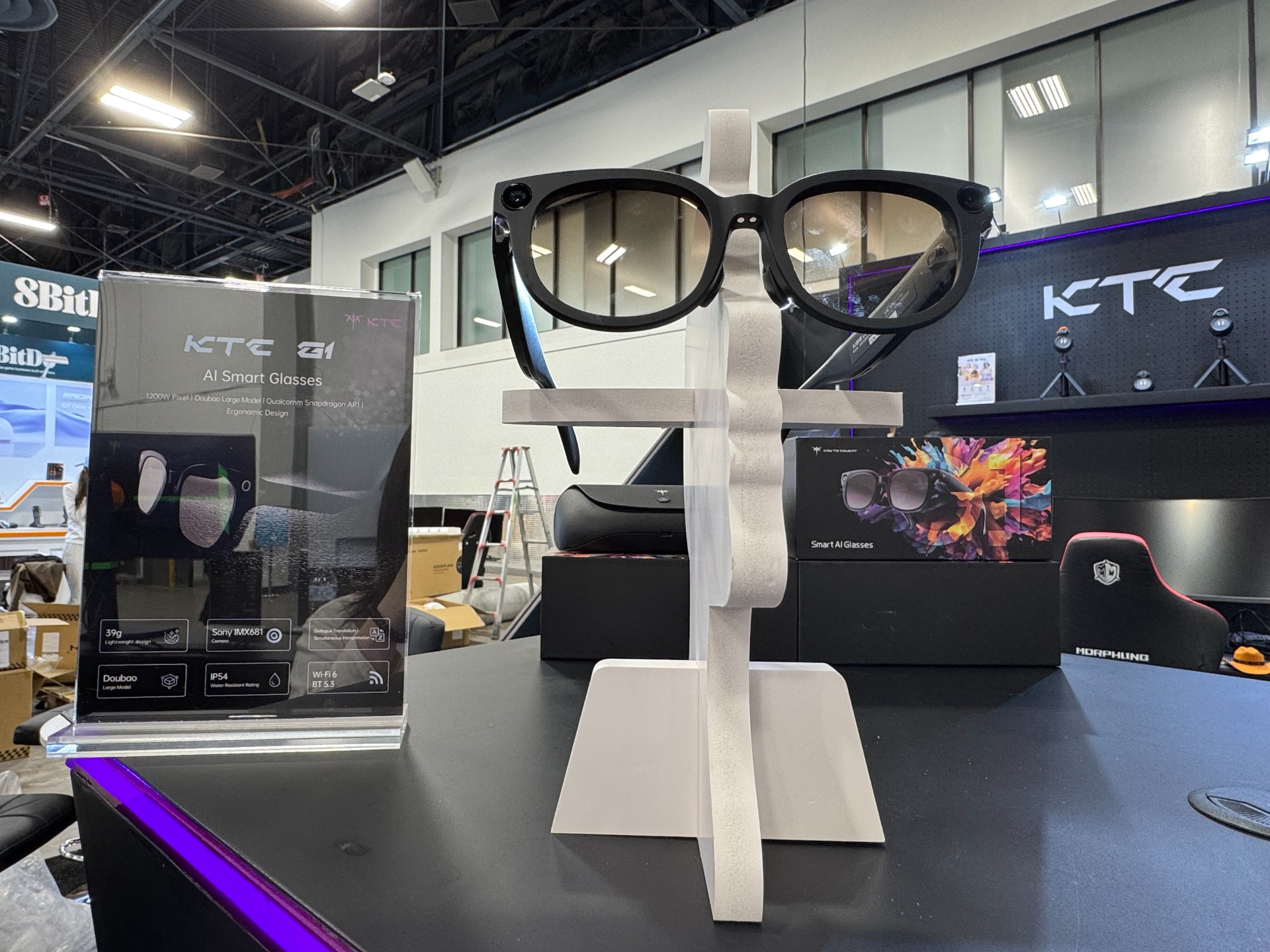 KTC AI 眼镜集轻量化与强大功能于一身,搭载高通骁龙AR1芯片与索尼IMX681摄像头,深度聚焦AI闪记、智能交互与实时翻译三大核心功能,致力于成为用户的随身智能助手。现场观众戴上仅重39克的眼镜进行拍照提问、实时翻译等操作,其准确的响应与交互体验吸引体验者连连称赞。