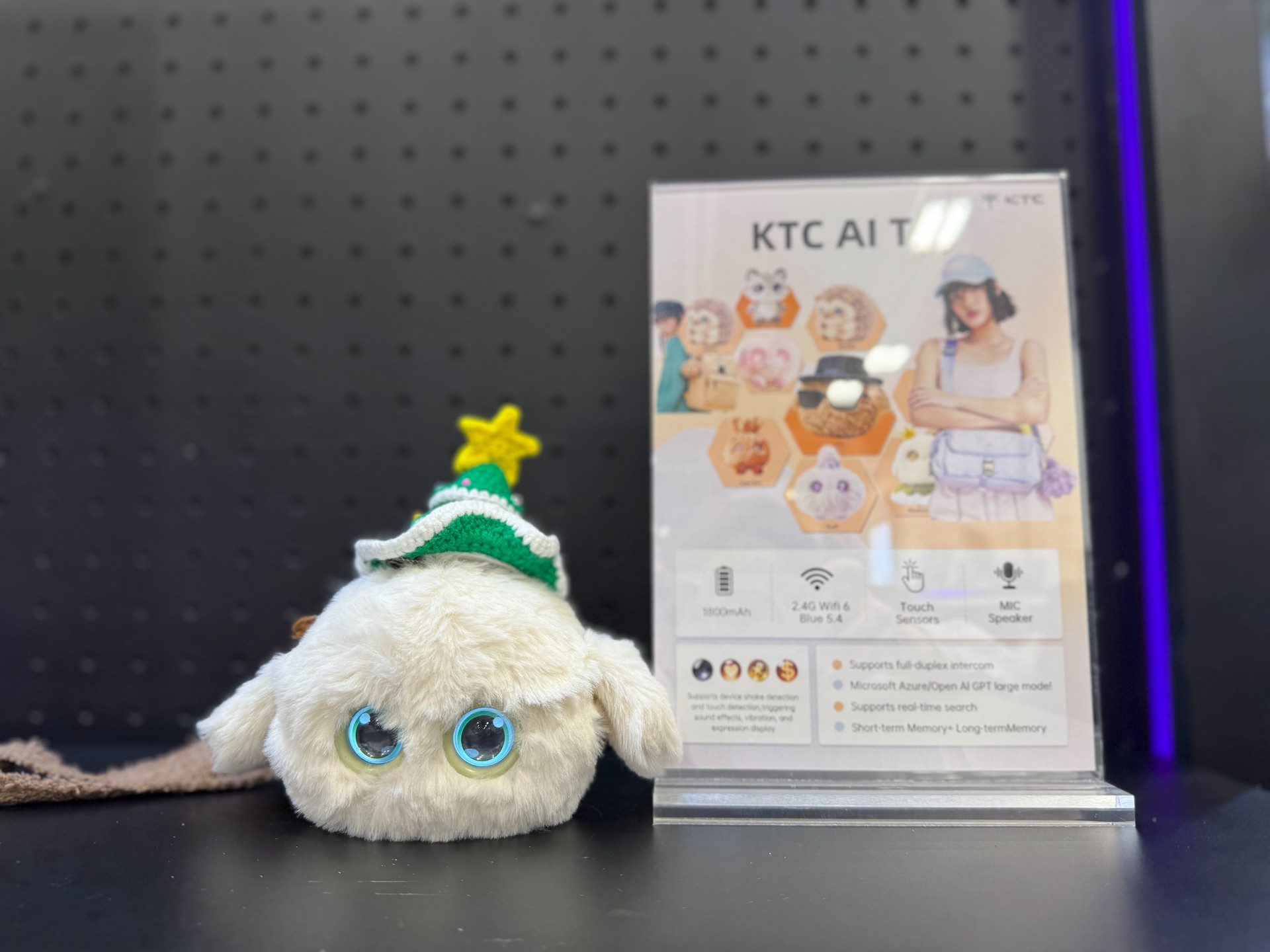 除去工具性AI穿戴设备,KTC品牌还带来了AI情感陪伴类产品:KTC AI Toy,毛茸茸的公仔对参观者的抚摸、摇晃做出灵动可爱的语音反馈,成为展会新焦点。这款聚焦“深度陪伴”的AI玩具,通过多模态交互、情感记忆与个性化养成系统,将AI技术融入日常生活场景,致力于为年轻用户提供长期、有温度的情感陪伴。